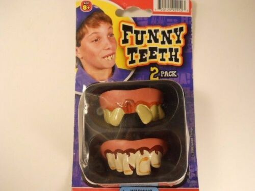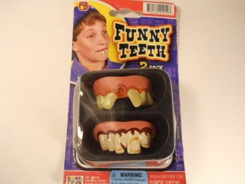 These are funny teeth as noted, great for parties, Halloween and more. Vintage item from the 90"s and in Perfect New condition, New in package. There is 2 teeth sets in a package.