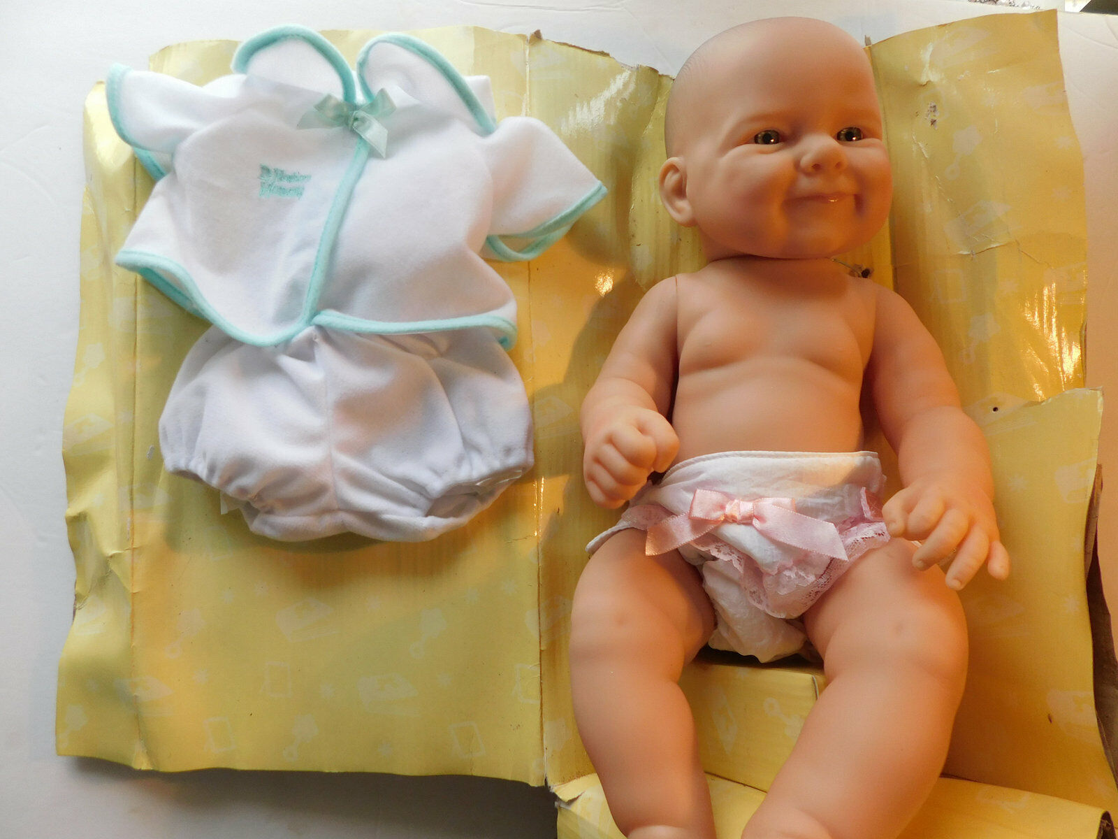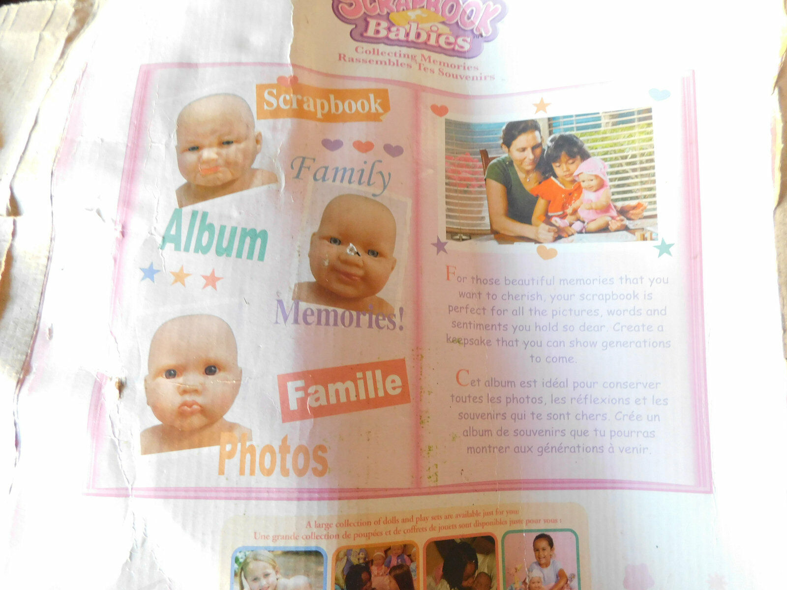 This is a Silicone like baby doll, Scented/ Pauper perfume. This was produced by Scrapbook babies. Comes with doll, diaper, top shirt bottom pants shorts as shown, Attached to the original box cardboard backing, Measures 16 inches High x 7 inch across. This does not come with a Perfect original unopened box. comes as shown
