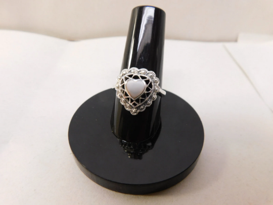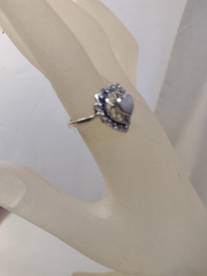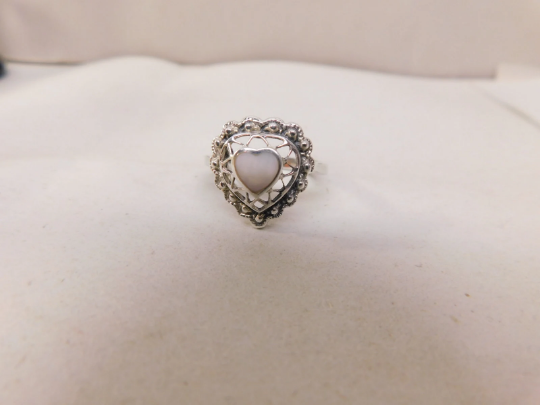925 M.O.P. Heart Ring Sz 7.5 Solid Sterling Silver Vintage Thailand