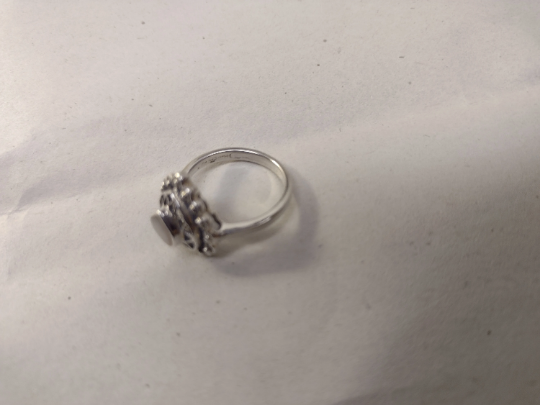 925 Stamped Sterling Silver. Ring is band style finger ring. MOP Heart stone. come in size 7.5 only. Has nice shinny silver finish on the silver and natural polished stone and design, Very nice rings from Thailand