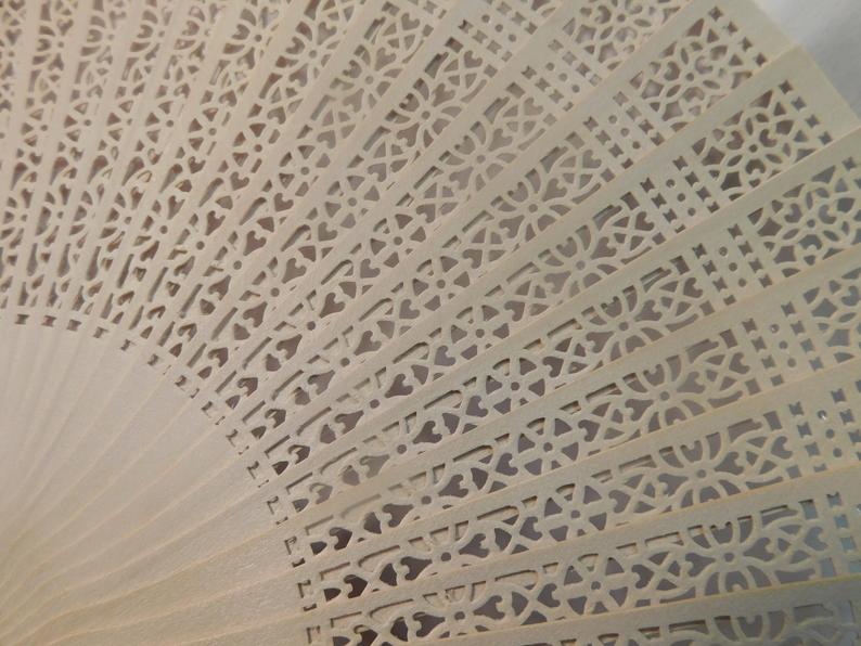 Vintage Asian Chinese Carved Scented wood Fan Folding Handheld hand Fan # 008
