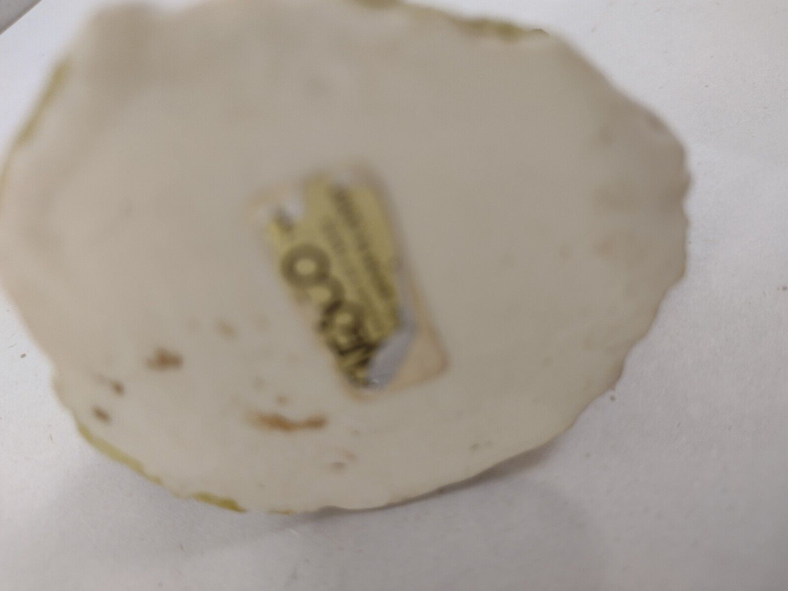 This has been painted on polyresin. Very decorative painted colors with details. Measurements are appx 2.25" There are 2 bids with flowers. Nice great collectible by Enesco