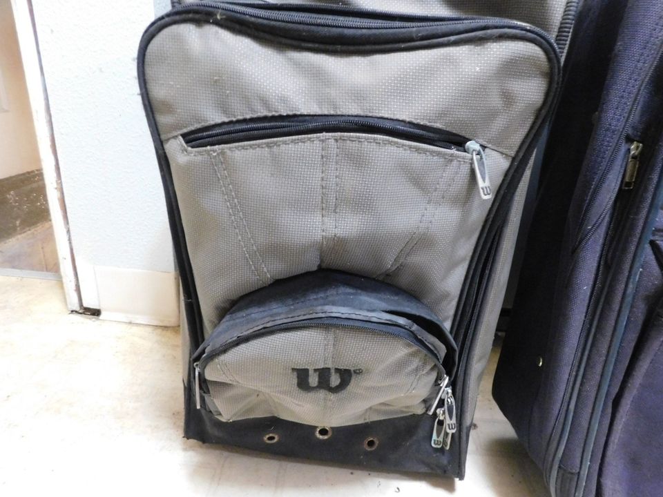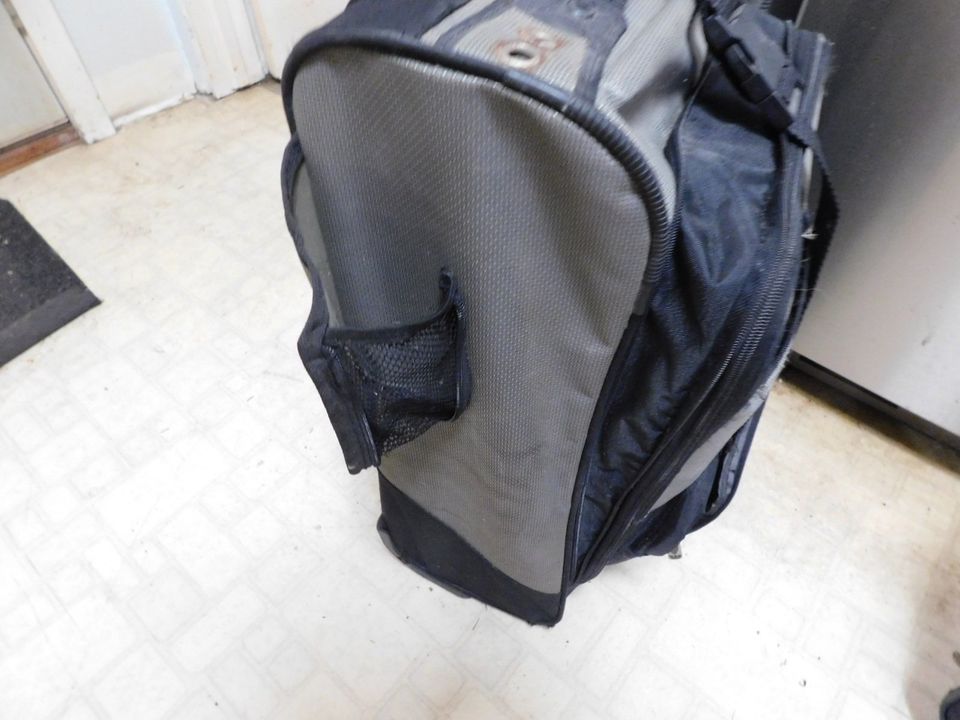 these are 2 different luggage suit cases in the set, both have wheels and pull up handles with zipperd compartments and straps as shown. great for on the go, real nice used cases in great condition