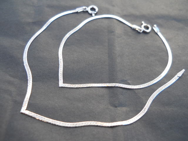 This V Bracelet is Shinny smooth glossy finish texture with natural Polished Silver. Plain silver with no fancy design. Herringbone / Flex. Measure 7 1/4″ L x 6mm W. Solid Sterling Silver with 925 stamped w/dog tag. Includes Cotton Box. Made in Italy.