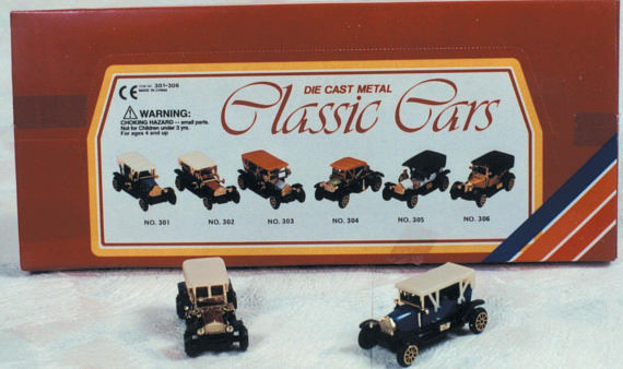 This set consist of all die cast Cars with plastic parts. All the Wheels move freely. Come in 3 different styles Cars, 3 come to a set Assorted They Measure 3 inch long. Great Antique cars. These are New w/o fancy window Boxes. There is 6 different Cars Avail.