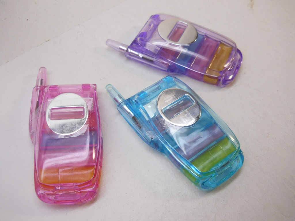 This set is new in the Original package and comes in 3 colors, Includes eye-shadow, lip gloss and applicators. The tray flips over applicators. The cell phone makeup set comes in 3 different colors. This measures in Size 4" In.