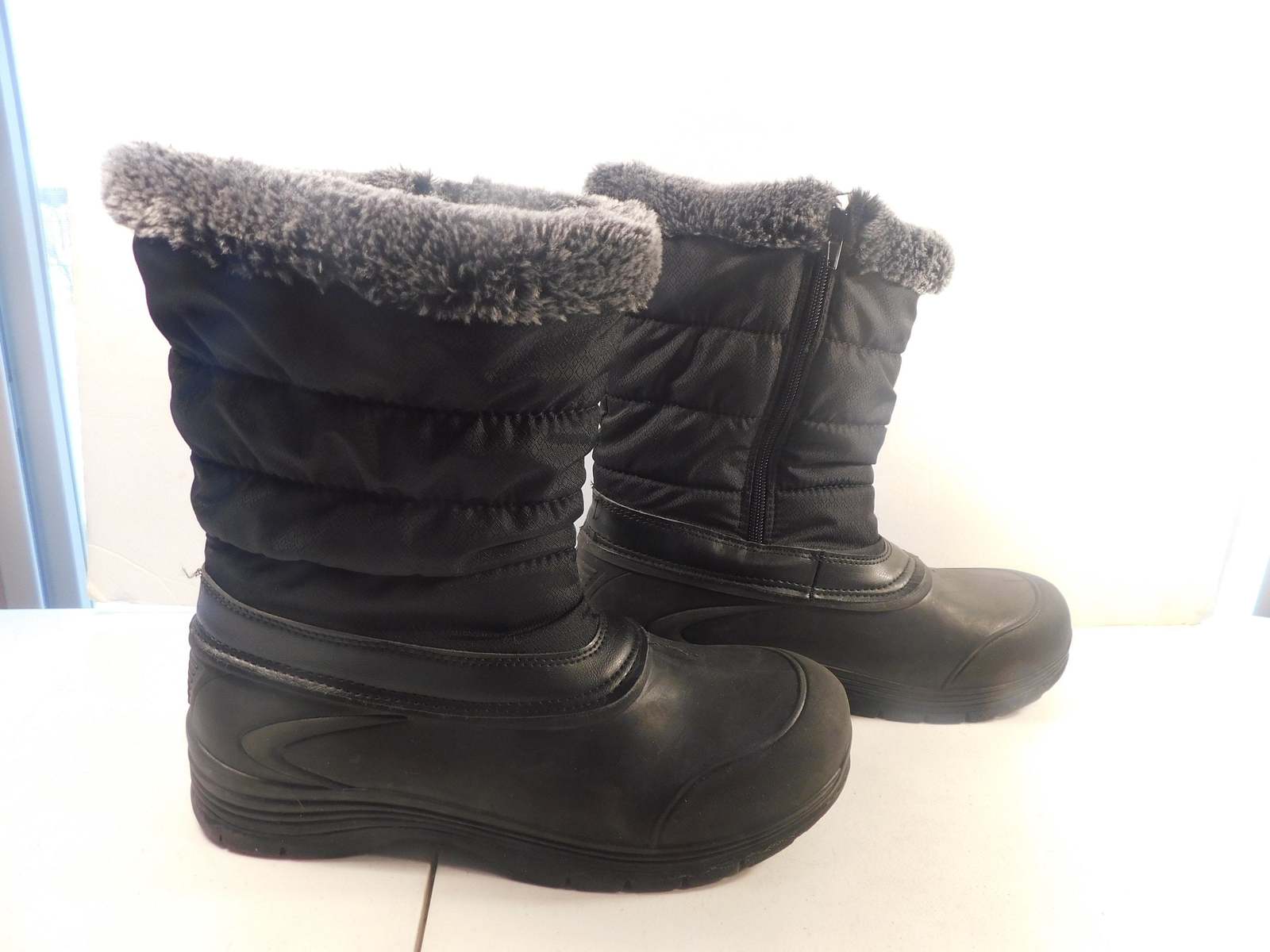 Time and Tru Womens Sz 10 Black Winter Snow Boots Rubber Quilted Faux Fur Lining