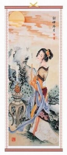 Scroll Painted Asian Lady w/clothes Wall Decor 12.5 x 30 Wall Hangings