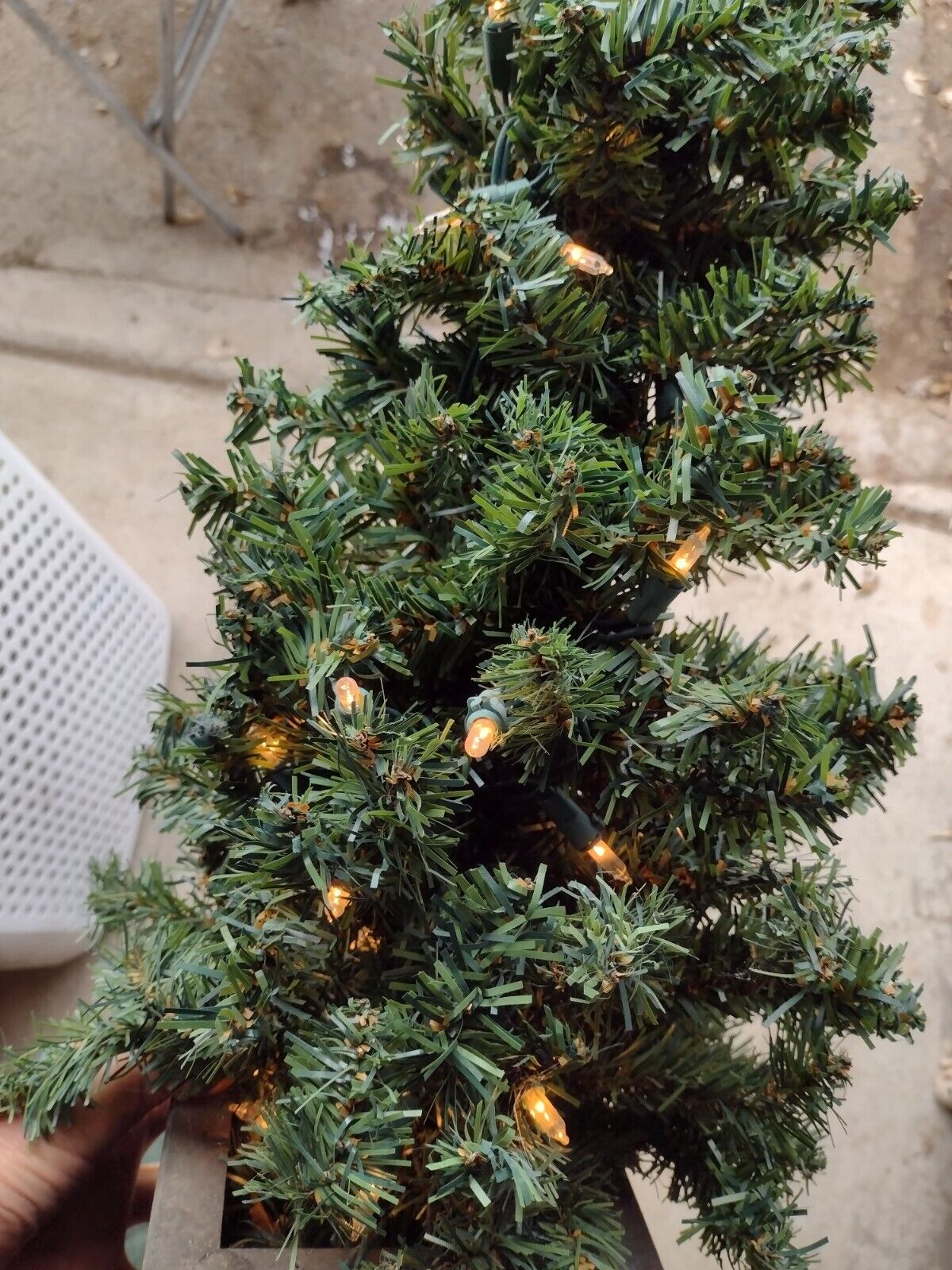 Artificial Christmas Tree w/ Lights Potted Stand bulbs 24" x 10 "