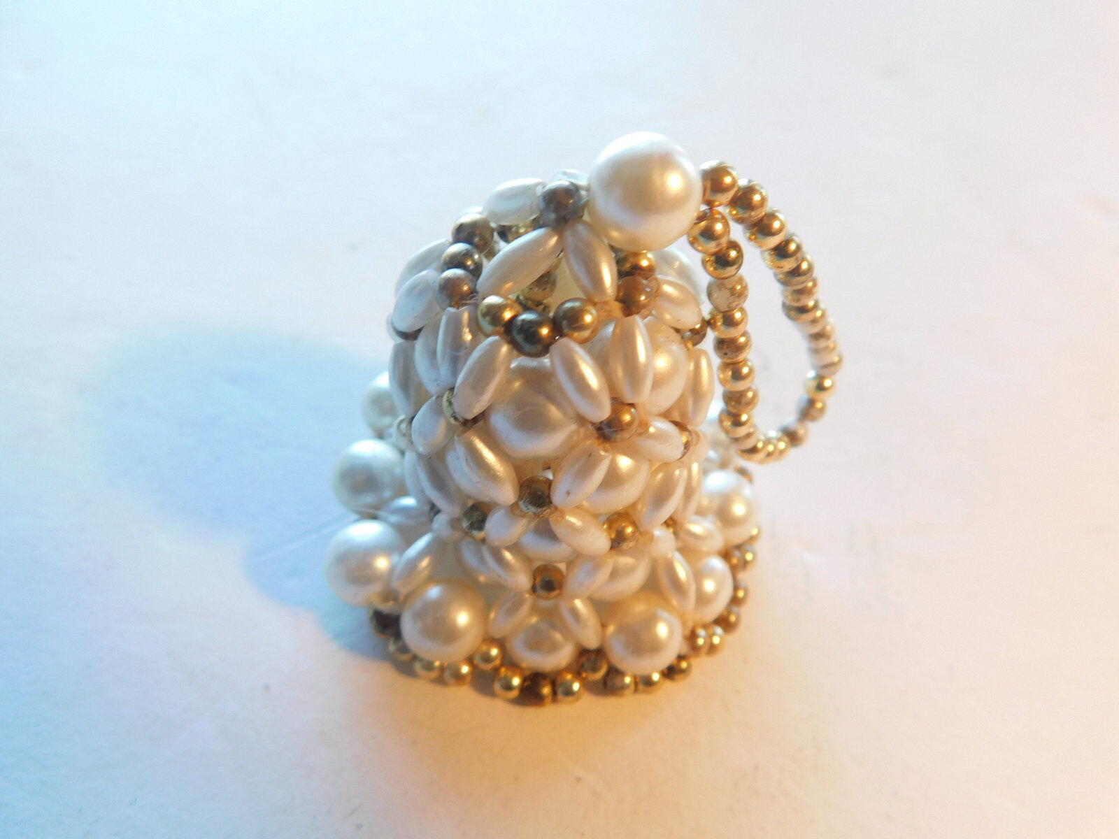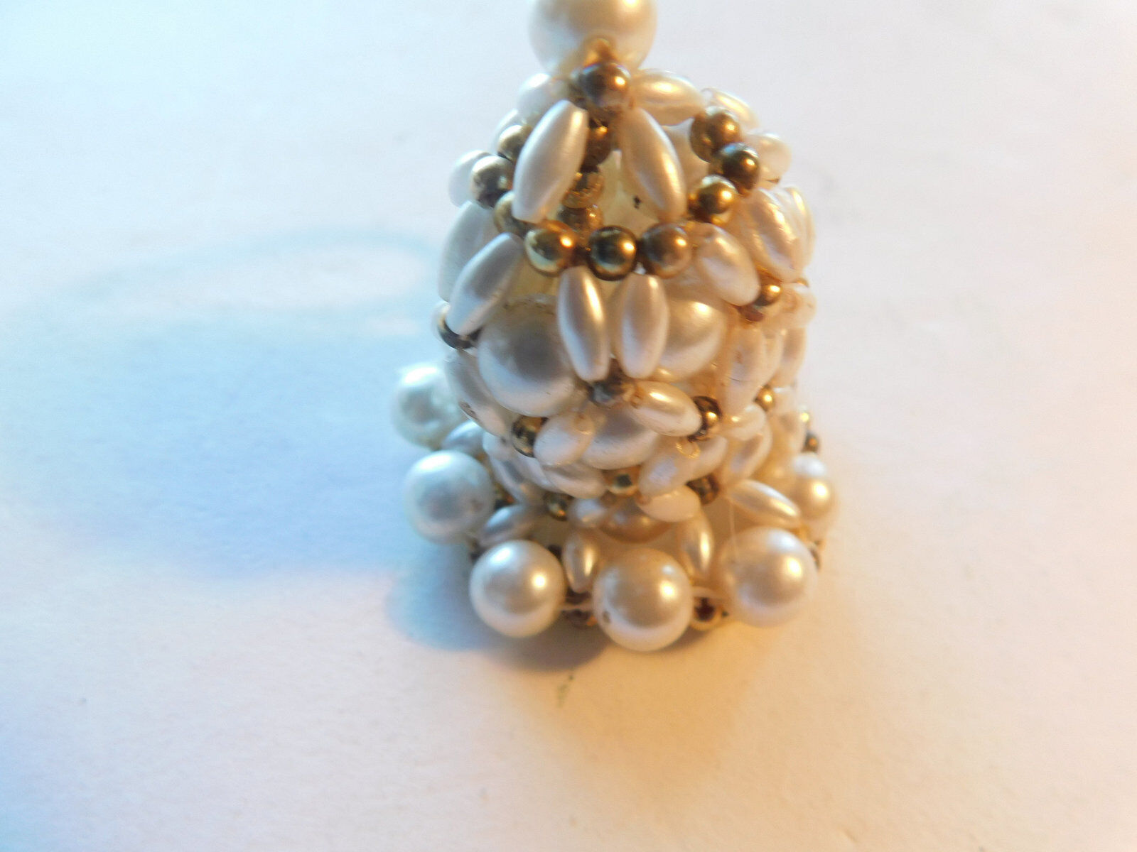 Pearl Christmas Holiday Bell Decor Gold Beads Hand Made Xmas Ornament