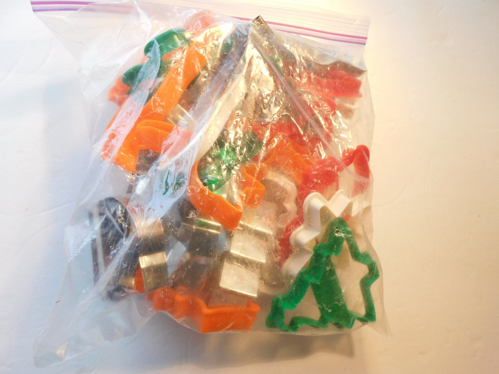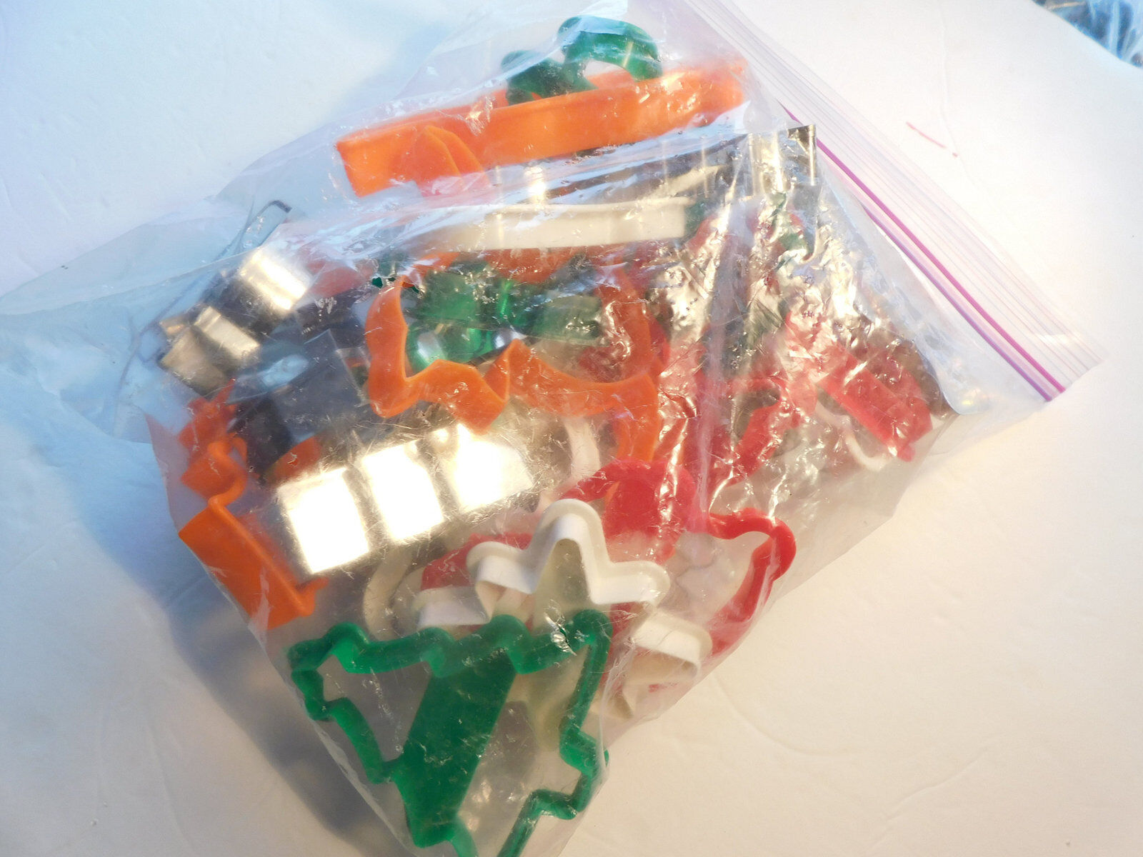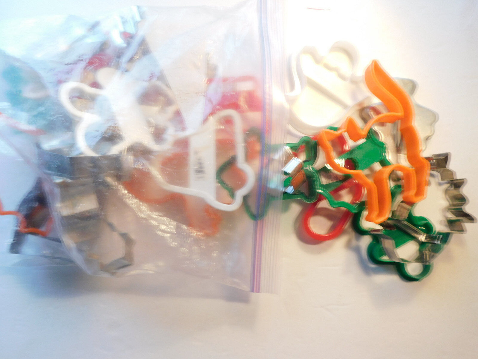 This is a assortment of all kinds of cookie cutters some are plastic and somr are metal, This is a big bag of cutters, great for al;l holliday and everyday cooking.. These are all pre owned and in A+ excellent condition.